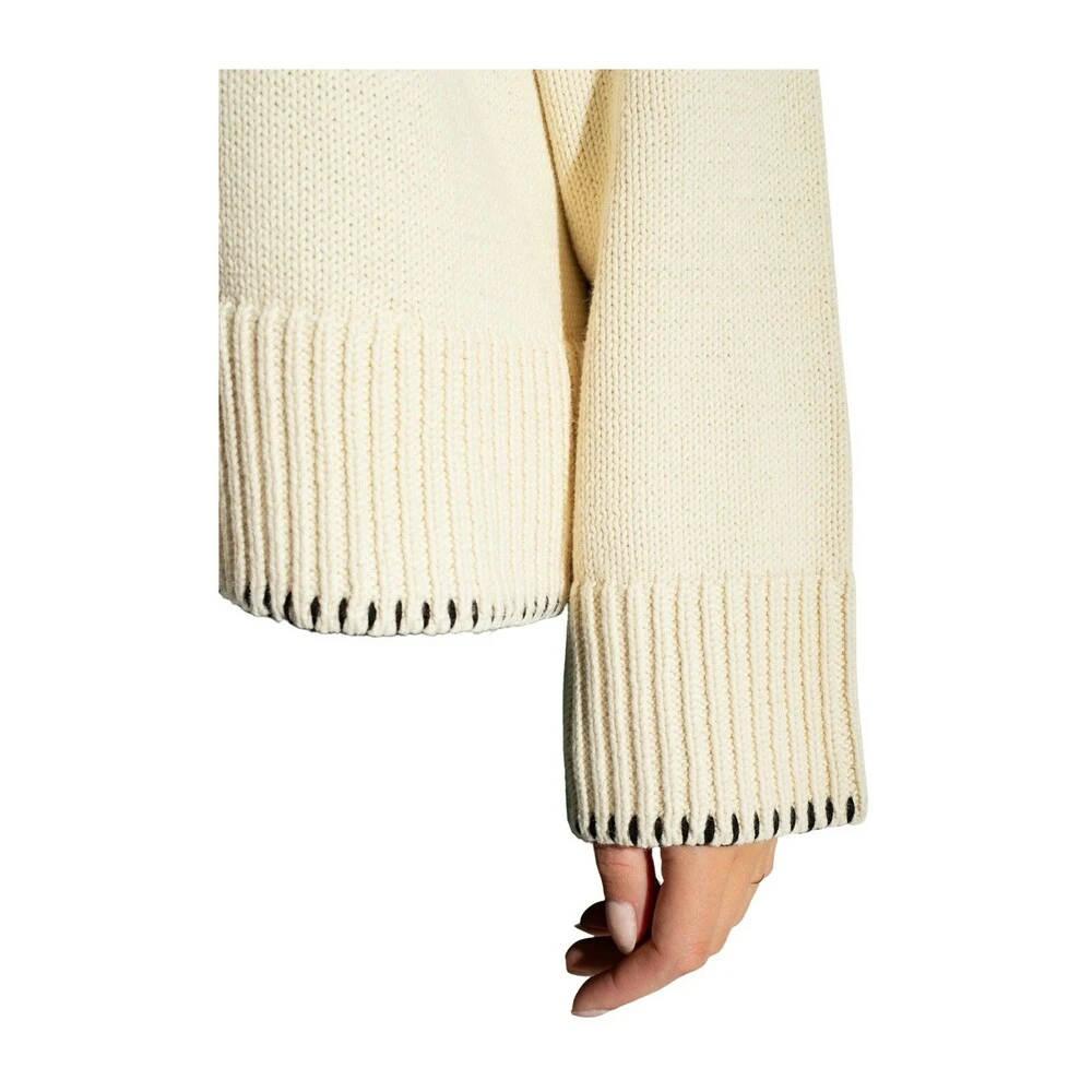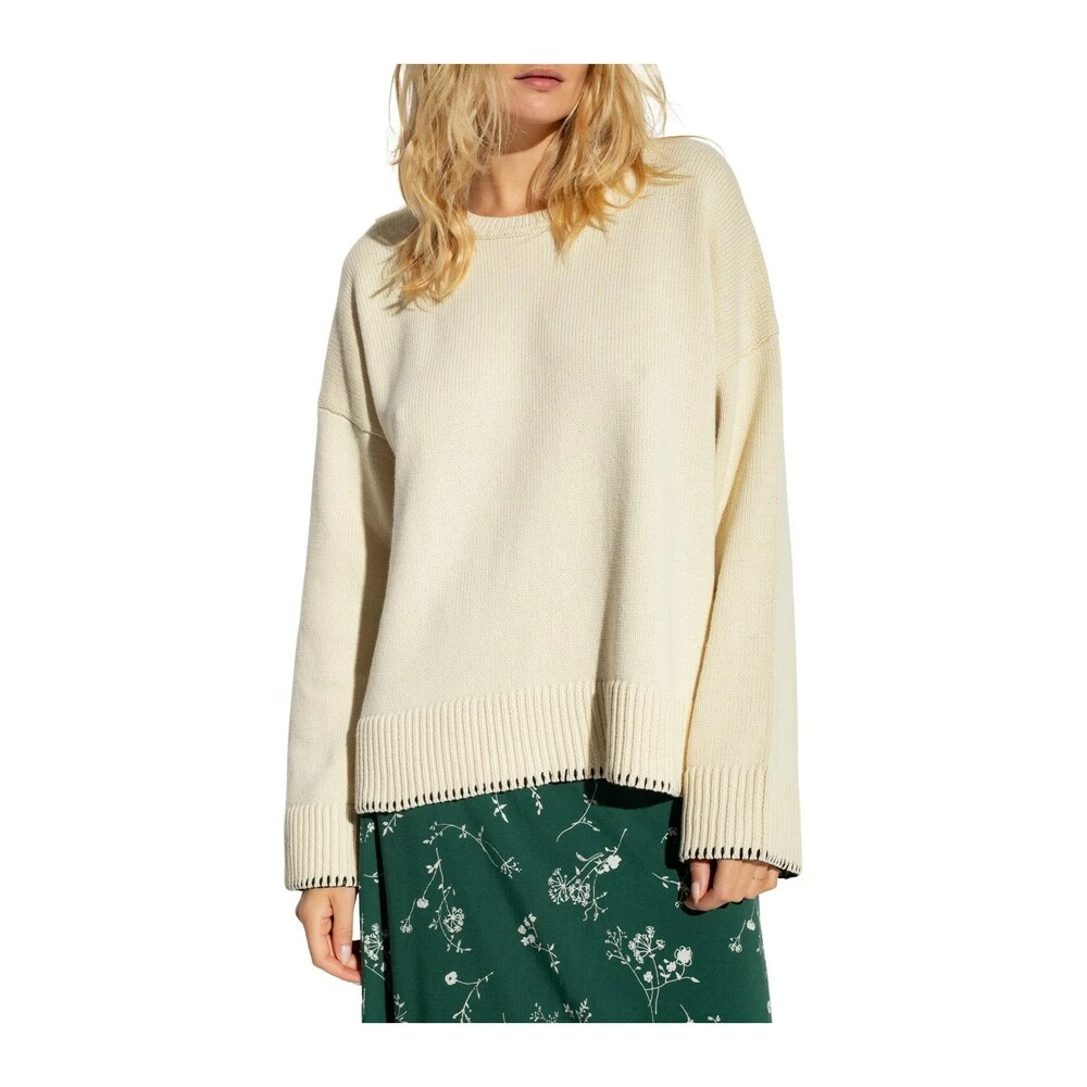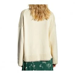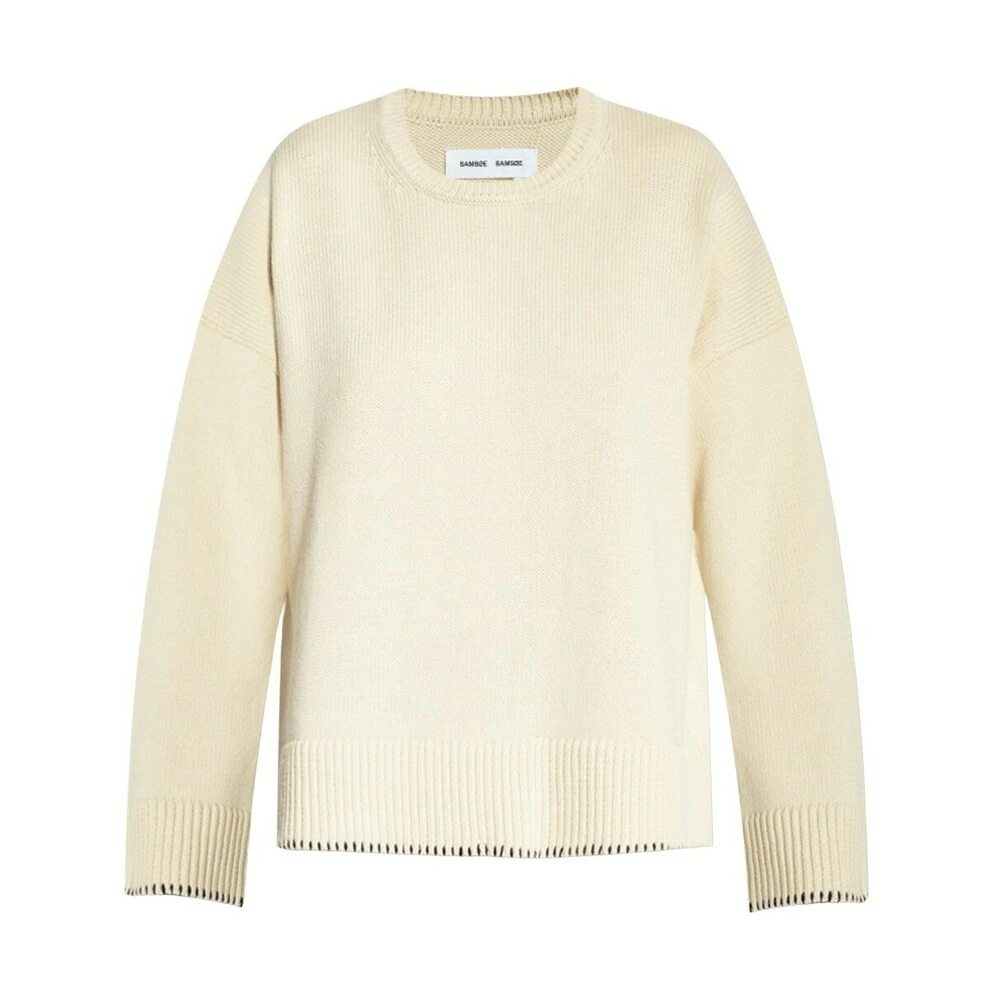 Krem ‘Krista’ store genser fra Samsoe Samsoe. Denne designen er laget av en organisk bomulls- og linblanding, og har ribbet trims med dekorativ svart trimming i mannskapshalsen, hem og mansjetter.