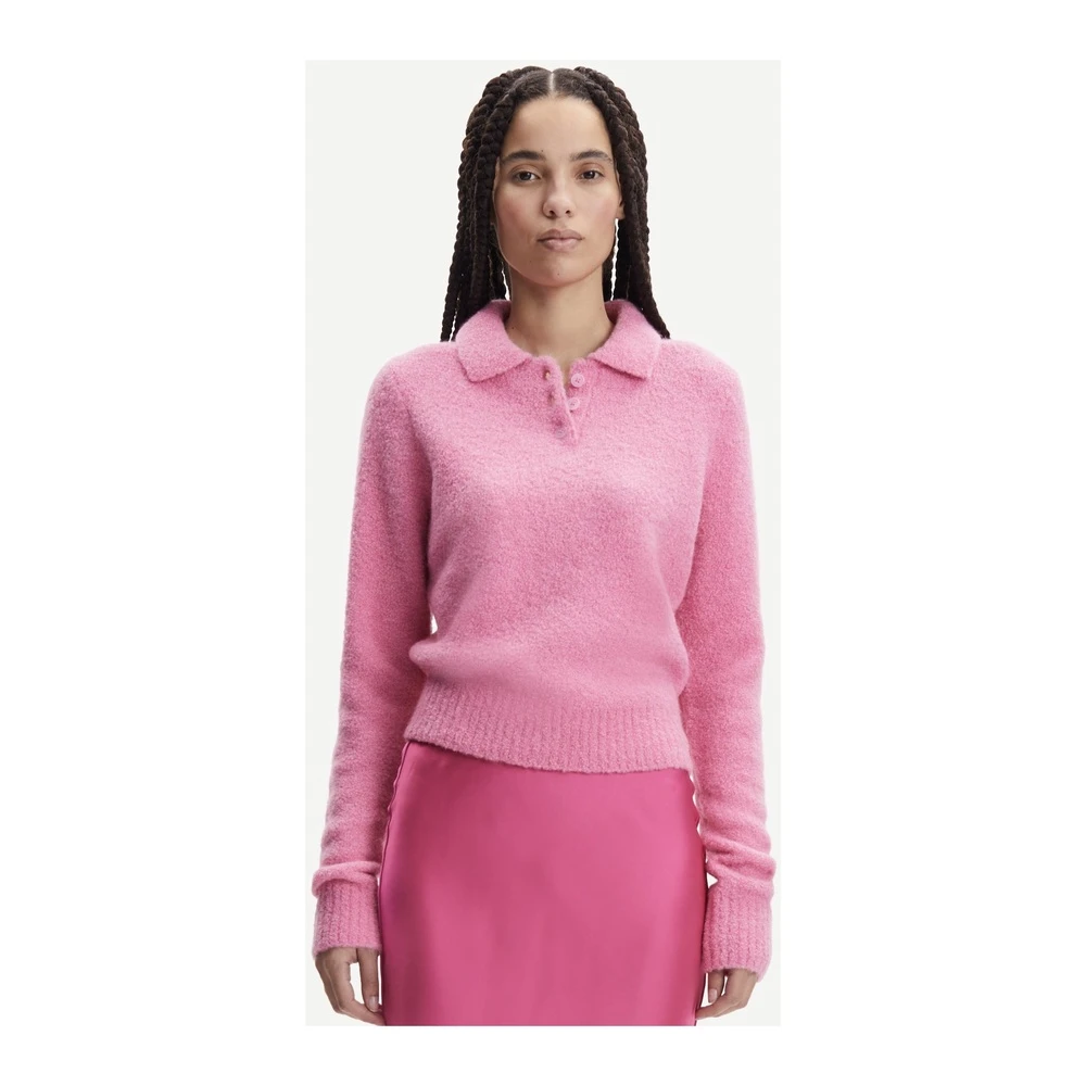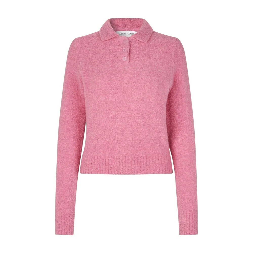 Slim fit strikket genser fra Samsøe Samsøe med kort fasong og lange ermer. Knappelukking i halsen, ribbestrikket krage, mansjetter og kant, helformede skuldre.