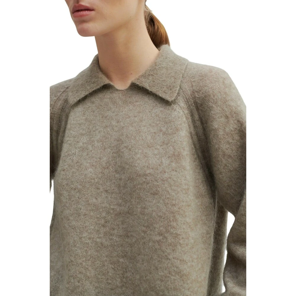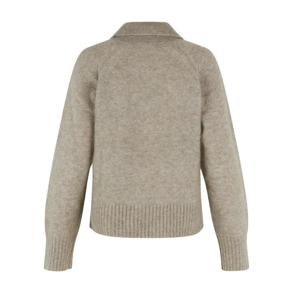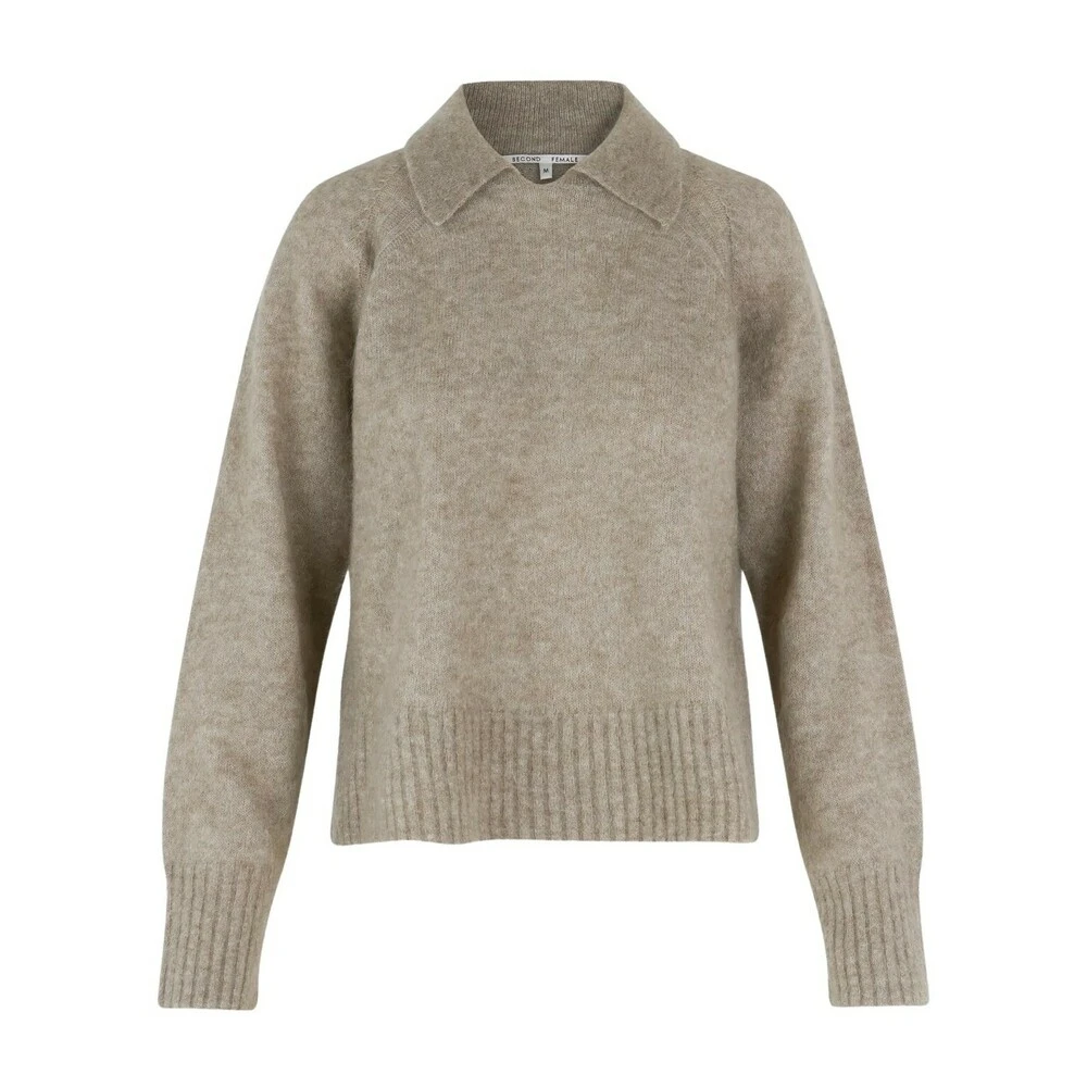 Second Female – Brook Knit Collar Lekker strikkegenser med lange raglanermer. Modellen er designet med en kul, strikket krage og v-hals. Avsluttes med brede, dekorative vrangborder bÃ¥de pÃ¥ hem og mansjetter. 34% Mohair 34% Ull 27% Polyamid 5% Elastan