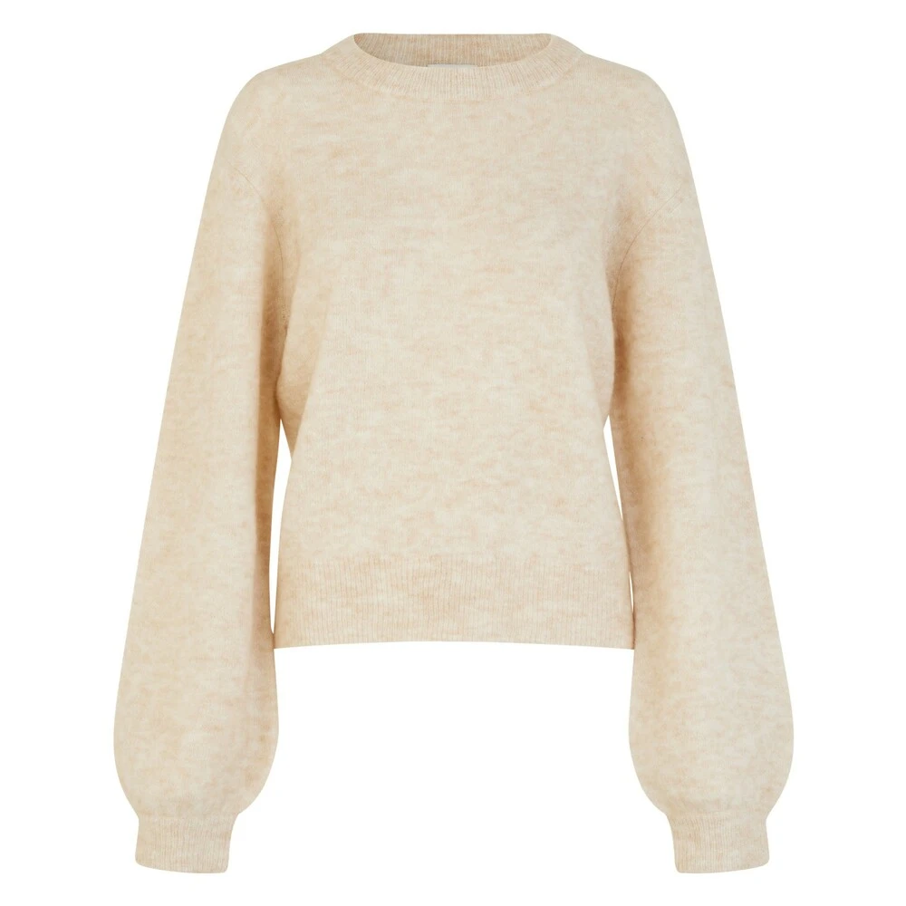Brook Knit Drop Shoulder fra Second Female. Deilig strikkegenser fra Second Female i en tynn og delikat ull/mohair-miks. Strikkegenseren har lave skuldre, puffermer og en normal passform – et herlig tilskudd i garderoben som er like fin til jeans som over kjoler.Materiale: Mohair 34%, Wool 34%, Polyamide 27%, Elasthane 5%