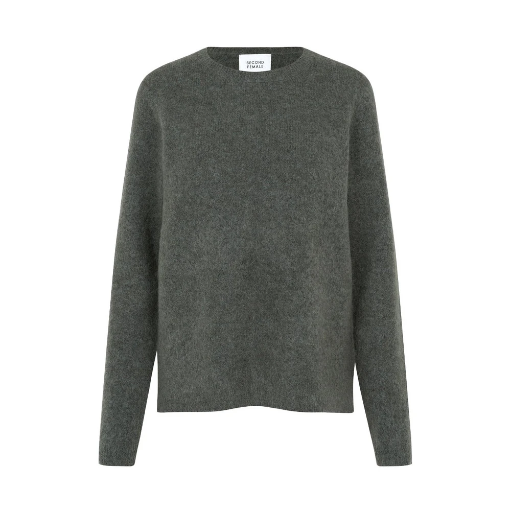 GrÄmelert genser fra Second Female, med rund hals, lange ermer og ribbestrikkede kanter. Rett fasong, og litt stor i stÞrrelsen. GÄ gjerne ned et nummer dersom du ikke Þnsker den sÄ oversized. Inneholder 34% mohair, 34% ull, 27% polyamid og 5% elastan. HÄndvaskes, anbefaler lufting da ull renser seg selv. Da sparer du bÄde plagget og miljÞ.