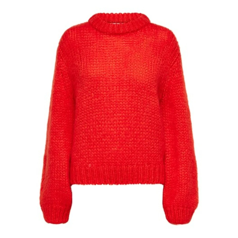 Suanne ls knit o-neck fra Selected Femme, Suanne ls knit o-neck fra Selected femme er er oversized deilig og myk genser med høy rund hals og god volum i armene Farge : Rød Suanne ls knit o-neck er laget av 34% mohair 34% Wool, 32%