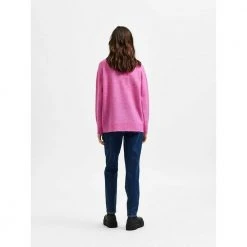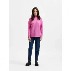 Lulu Ls Knit High Neck fra Selected Femme i fargen Phlox Pink Melange. Behagelig strikkegenser i en deilig ull- og alpakkablanding med stretch som sørger for god komfort. Genseren har høy hals og ribbekant i halsen, falden og mansjettene. Med sin avslappede passform er Lulu Ls Knit perfekt å bruke over skjorter med knepping til jobb, eller stylet med jeans med rette ben for en avslappet look. Strikkegenser Høy hals Raglanskuldre Lange ermer Finribbede kanter Rett fald Ull- og alpakkablanding Avslappet passform Modellen er 177 cm høy og bruker str. S/36