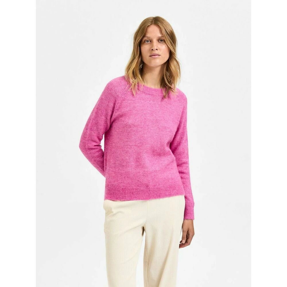 Lulu Ls Knit O-Neck fra Selected Femme i fargen Phlox Pink Melange. Behagelig strikkegenser i en deilig ull- og alpakkablanding med stretch som sørger for god komfort. Genseren har klassisk rund hals og ribbekant i halsen, falden og mansjettene. Lulu Ls Knit er perfekt å bruke både på jobb og til helgekos. Bruk den gjerne med dine favorittbukser. Strikkegenser Rund hals Ribbekant i halsen, falden og mansjettene Ull- og alpakkablanding Modellen er 177 cm høy og bruker str. S/36