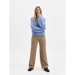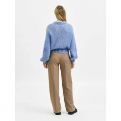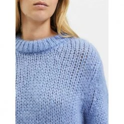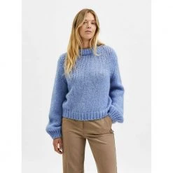 Suanne Ls Knit O-neck fra Selected Femme. Pakk deg inn i en av sesongens mest behagelige strikkegensere. Genseren er laget i et klassisk, avslappet snitt med voluminÞse ermer som vil holde deg varm og en moteriktig, strikket krage. Om sommeren er denne superfin over en kjole pÄ kjÞlige dager, og pÄ hÞsten er den perfekt Ä kombinere med en ullkÄpe, mÞrk denim og et par spisse boots. Strikkegenser Strikket, ribbet krage Lave skuldre Lange, voluminÞse ermer Ribbekanter Rett fald Relaxed fit Materiale: 34% Ull, 34% Mohair, 32% Akryl