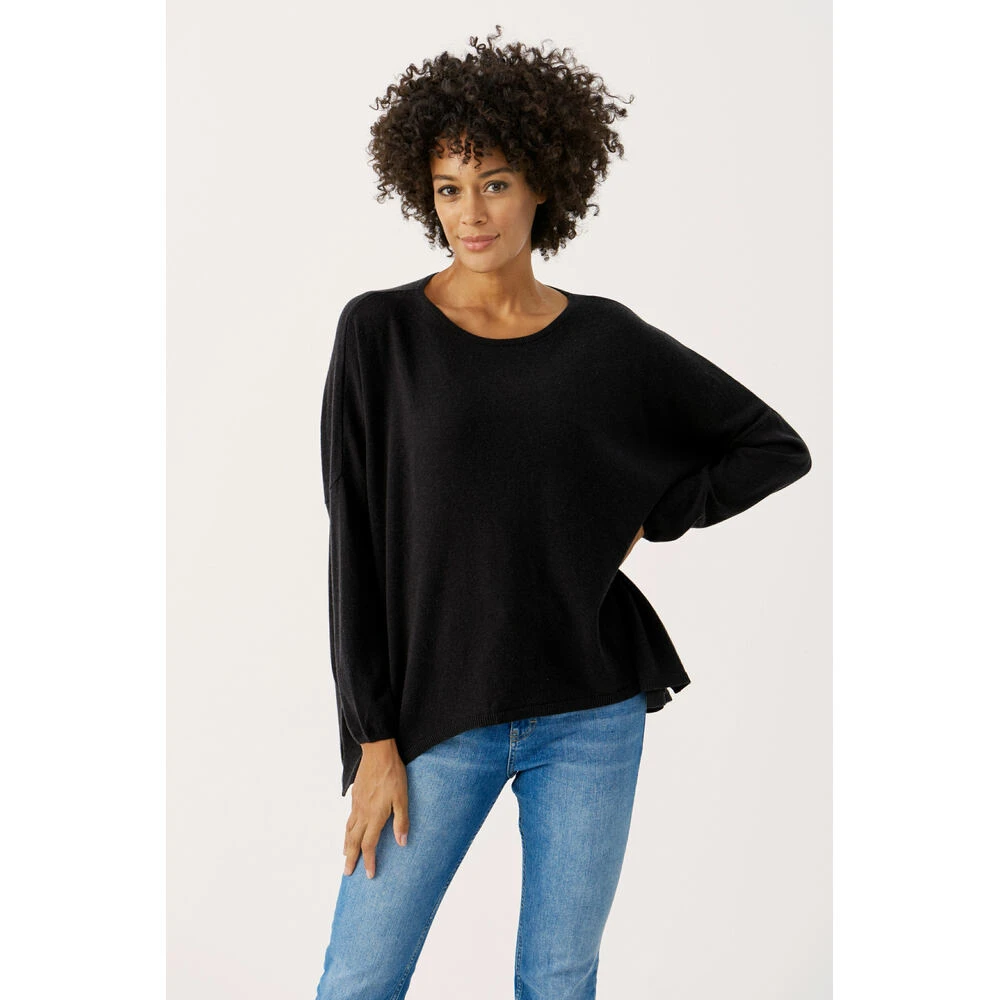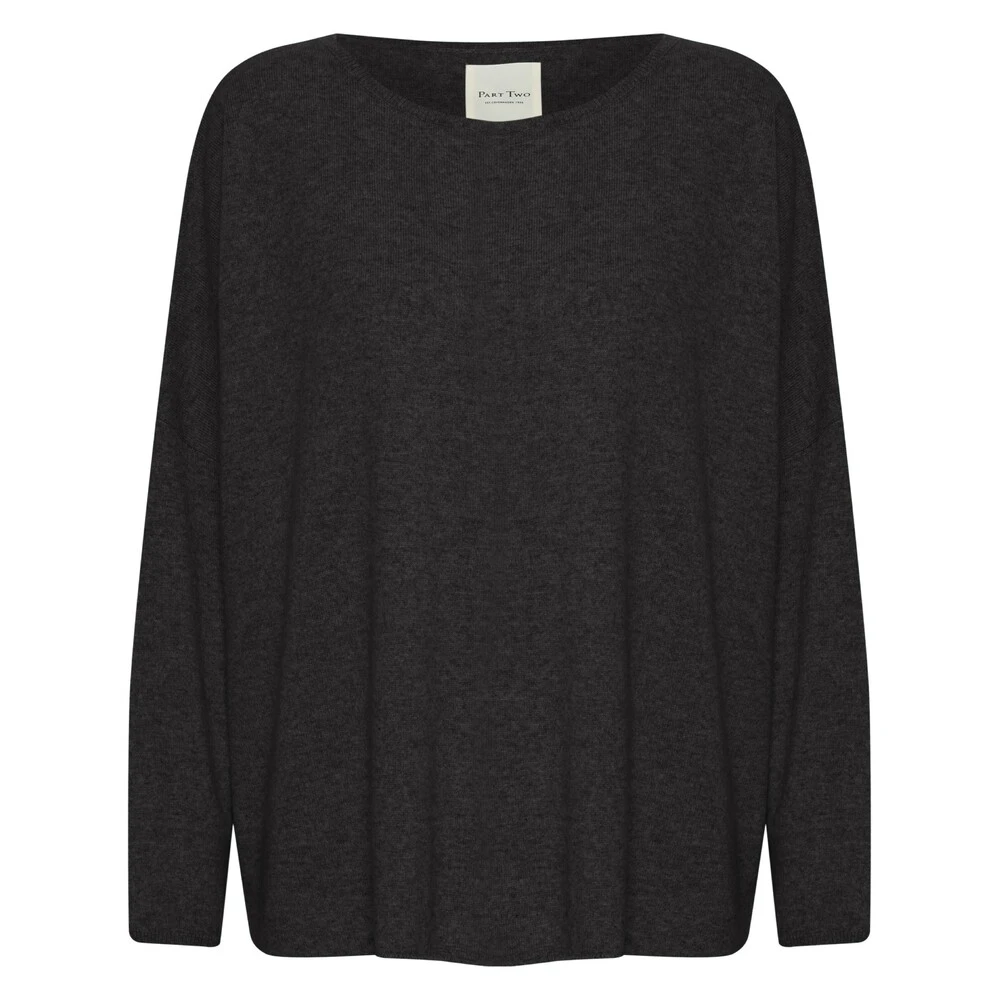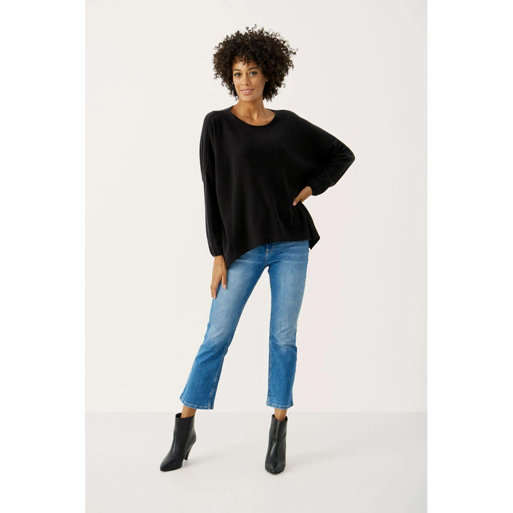 Løs og ledig ullgenser fra Part Two. Tynn kvalitet med smale ermer og god vidde i bolen. Kvasiløsning av R-hals og båthals. Splitt i sidene. Kan fort bli en favoritt! 47% Wool,36% Viscose (LENZING™ ECOVERO™),10% Polyamide,7% Cashmere