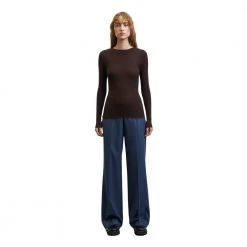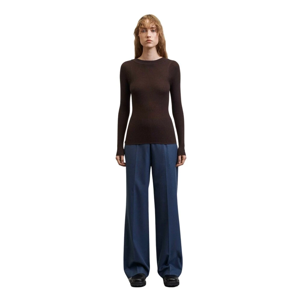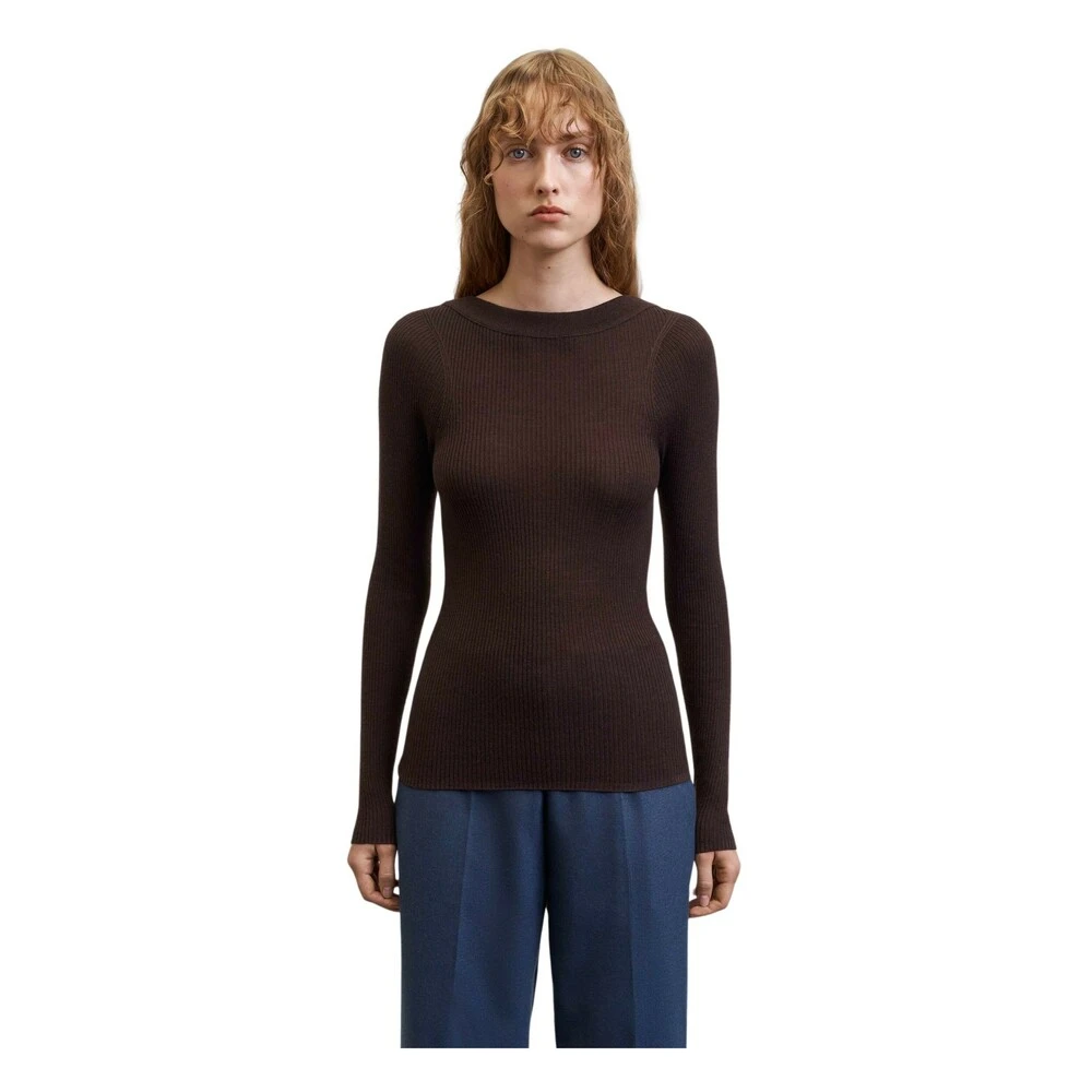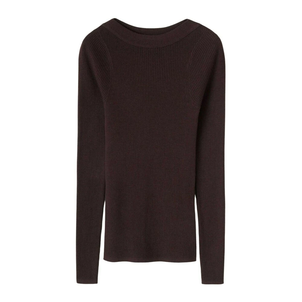 Elke er en ribbet genser i merinoull. Slank passform i hoftelengde. BĂĄtutringning i halsen og dobbel foldet halskant. Modellen har pĂĄ seg størrelse S 100% ull – Merino Kommer i fagen desert plum som er en brun rød fargetone.