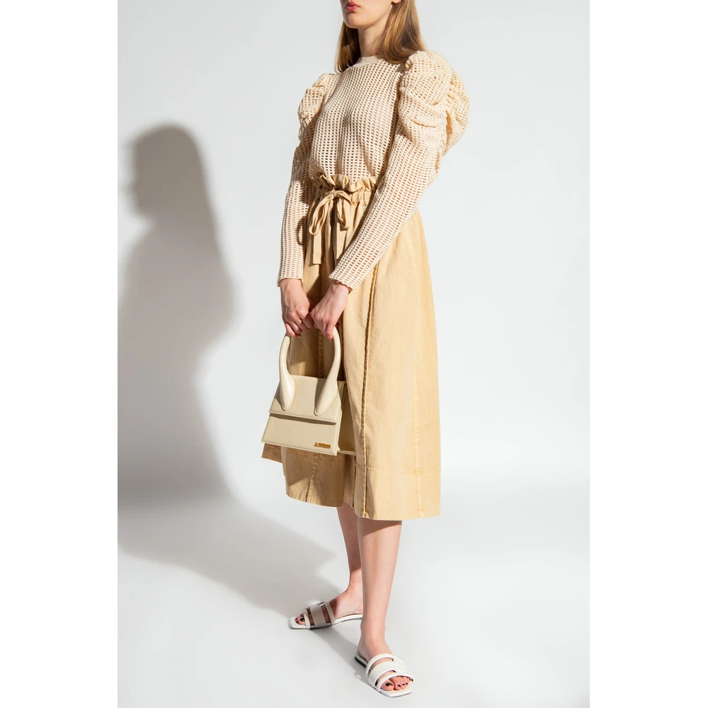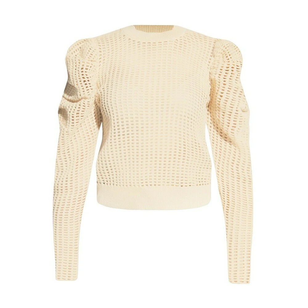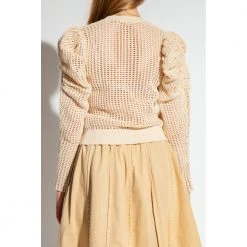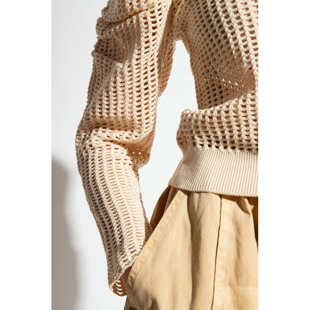 Light Beige ‘Delaney’ åpent genser fra Ulla Johnson. Denne designen er laget av bomull med en åpen strikket, og har lange ermer med draperte detaljer og ribbestrikkede trimmer i mannskapet og hemmen.