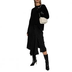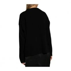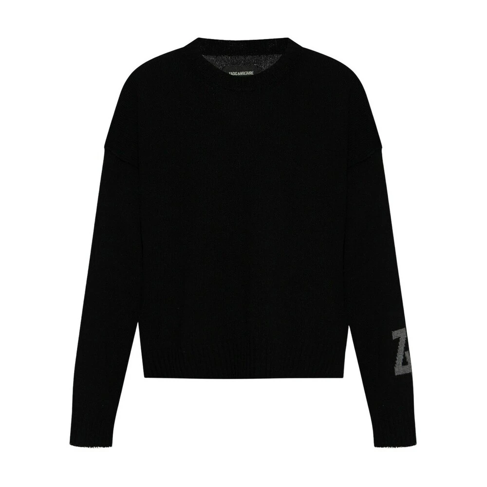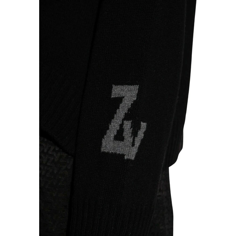 Svart ‘Markus’ crewneck -genser fra Zadig & Voltaire. Denne stilen er laget av delvis resirkulert kashmir og ull, og har en avslappet silhuett med en brodert grå logo, lange ermer og ribbestrikk.
